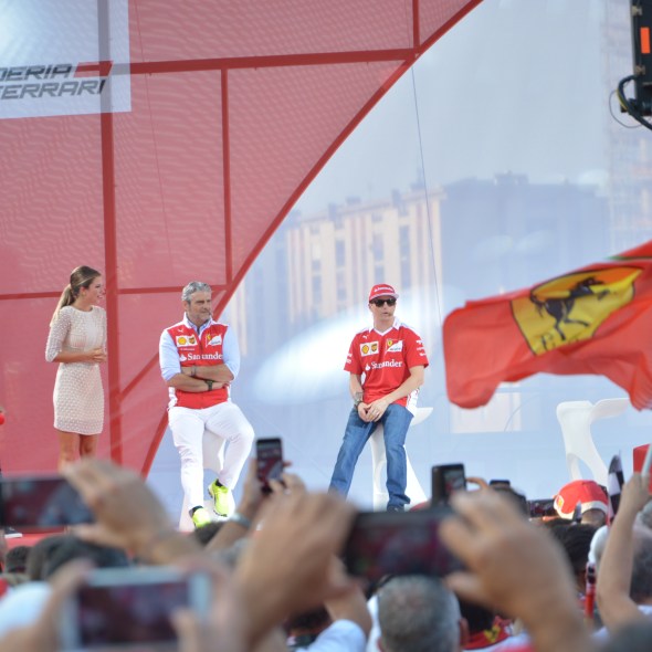 Kimi e Vettel salutano i fans in piazza Gae Aulenti a Milano